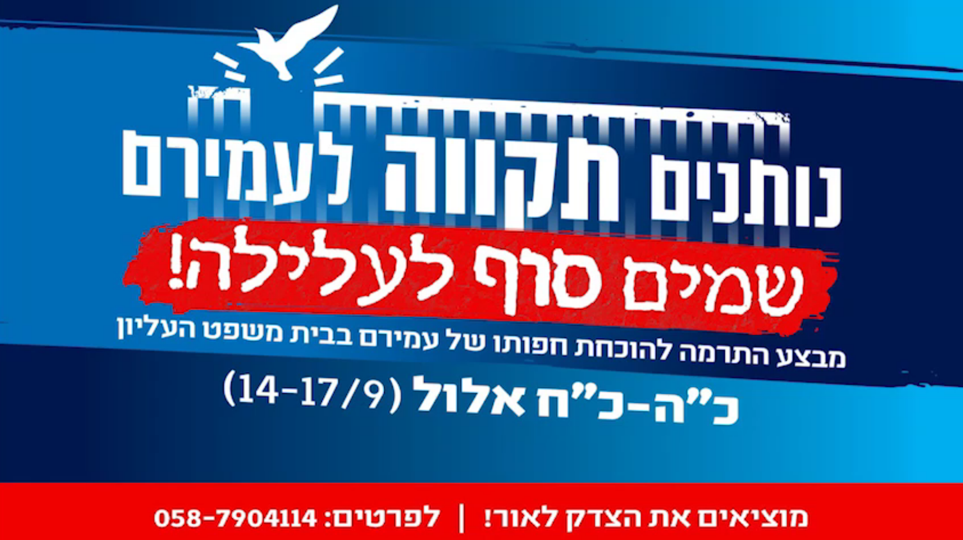 נזכיר כי הבוקר תחת הכותרת “נותנים תקוה לעמירם – שמים סוף לעלילה” יצאה אוריין יחד עם משפחת בן אוליאל, חברים, תומכים וארגון חוננו למבצע גיוס המונים לטובת ניהול הערעור של בן אוליאל בבימ”ש העליון לצורך הוכחת חפותו.