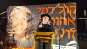 אברהם סנדק, אביו של אהוביה ז”ל, נשא דברים בהפגנה: