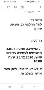 כבר אמש, בעקבות דחיפות העתירה הורה השופט שטיין למשטרה לתת תגובתה עד יום שישי בשעות הבוקר.